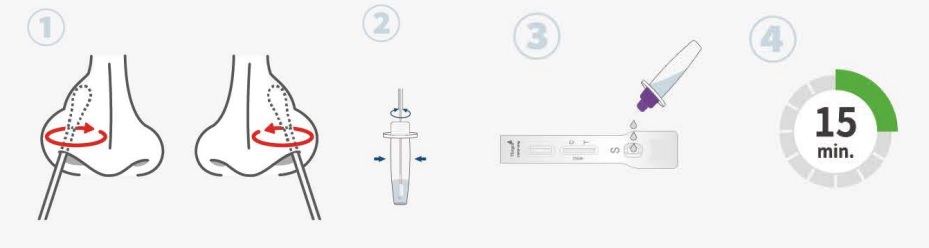 1. Introducir el hisopo o bastoncillo con cuidado en una fosa nasal aproximadamente 2 cm de profundidad y girar el hisopo 3 o 4 veces. Repetir en la otra fosa nasal.